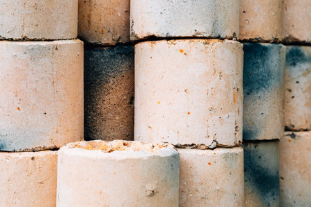 Bunch of concrete sand bricks. Selective focus.