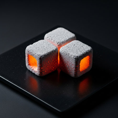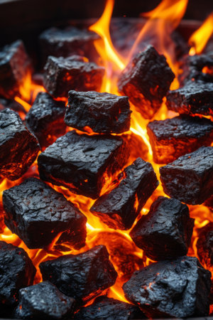 Freeze Motion Shot of Glowing Charcoal Briquettes on Garden Grill, Macro Shot