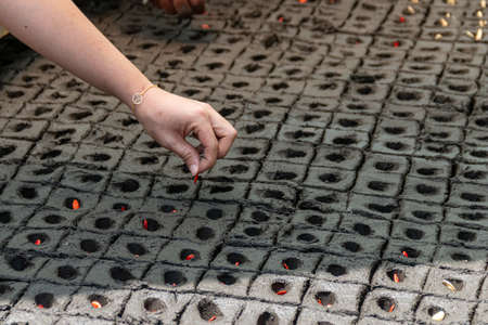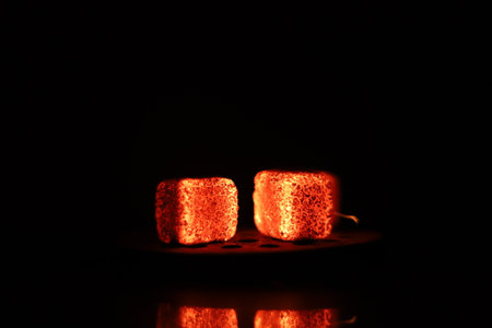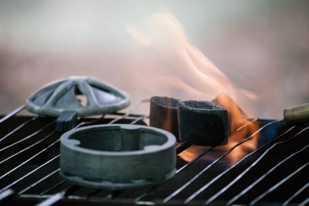 Close-up ignition of special coal burner for a hookah, selective focus