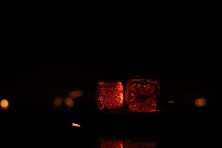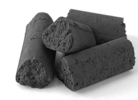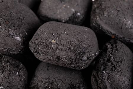 Shisha coal, charcoal pieces for water pipes closeup
