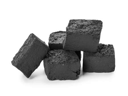 Pieces of coal for hookah on white background