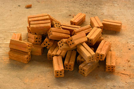Pile of red bricks in construction site