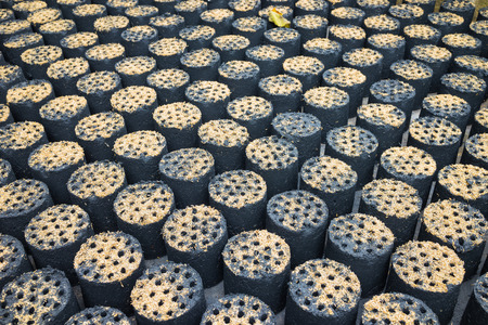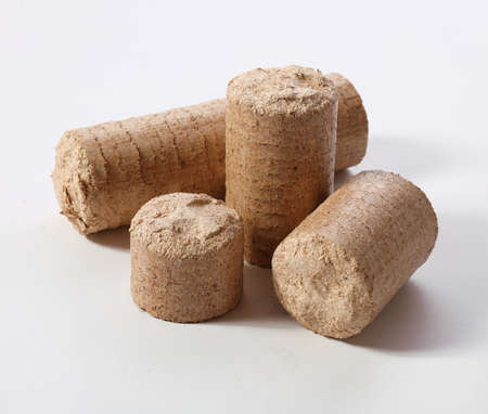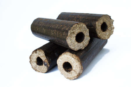 Sawdust briquettes: those with holes through the centre, and those that are solid. Sustainable bioenergy