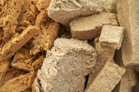 Briquettes fuel from wood shavings of oak and beech.
