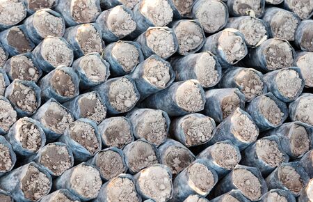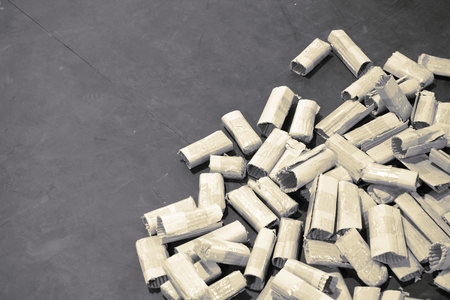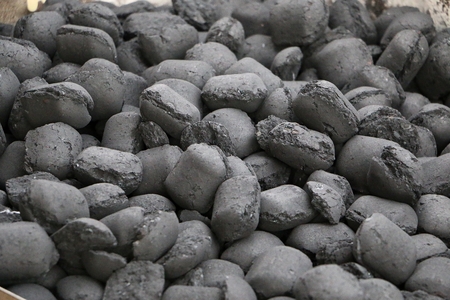 Close up of a pile of charcoal piles for camping outdoors