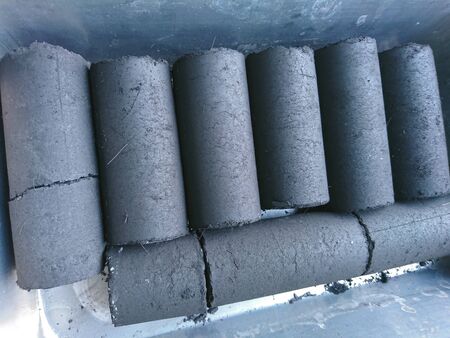 Sawdust briquettes: those with holes through the centre, and those that are solid. Sustainable bioenergy