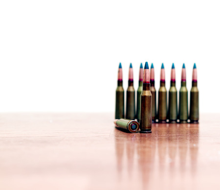 Assorted bullets on a table, indoor shot with shallow depth of field