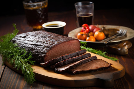smoked beef brisket on a board