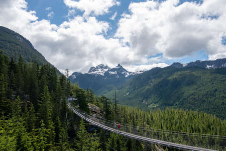A picture of Sky Pilot mountain and the Sky Pilot Suspension Bridge. Squamish BC Canada