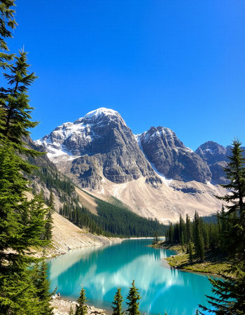 Mountain lake with reflection in Banff National Park, Alberta, Canada