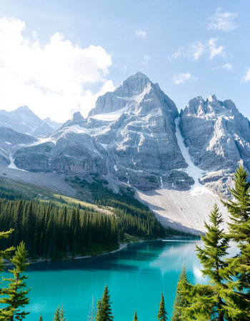 Mountain lake in the Canadian Rockies. The concept of active, ecological and photo tourism