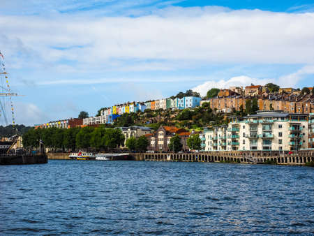 Colorful homes on the hillside in the harbour in Bristol, England, UK