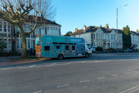 Bristol-March 2020-England-a close up view of a recycling collections truck picking up its weekly loads