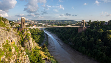 Editorial Bristol, UK - August 1st, 2021: The Clifton Suspension Bridge which spans the Avon Gorge and the River Avon, linking Clifton in Bristol to Leigh Woods in North Somerset in the UK