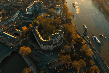 Aerial drone views of London's iconic skyline, blending historic and modern architecture..