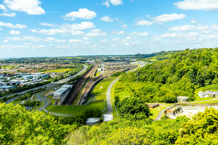 BRISTOL, UNITED KINGDOM - JULY 03: This is an aerial view of Bristol city and scenery on July 03, 2019 in Bristol