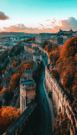 Medieval Fortress Walls, Ancient Architecture And Colorful Autumn Foliage, Historic Landmark