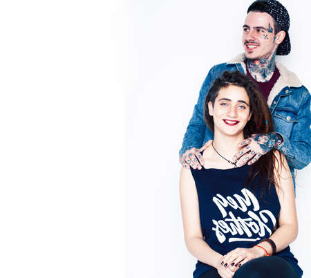 young pretty couple together, lifestyle people concept, boyfriend and girlfriend tattoo