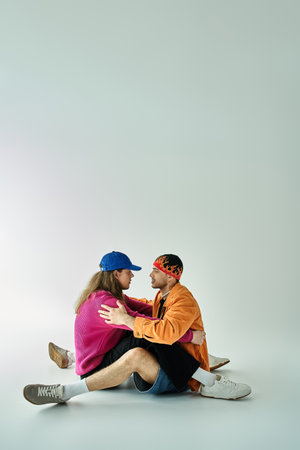 Cool couple cuddling in studio