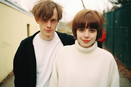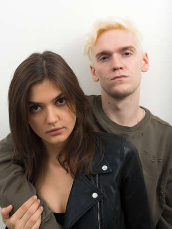 Portrait of a young couple happy millennial casual and modern dress. People of urban style