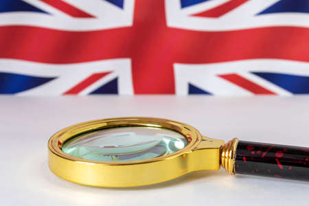 Flag of Great Britain. Concept of national symbol of Great Britain. Isolated on purple background.