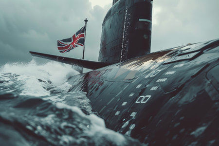 An 18th-century British flag bills from the mast of an old wooden ship. The scene captures a stormy sea with dark clouds and faint moonlight illuminating the flag and ship.
