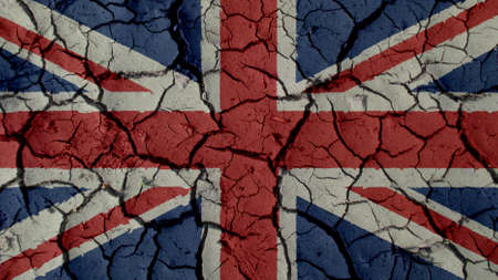 Political Crisis Or Environmental Concept: Mud Cracks With UK Flag