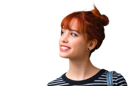 Young student redhead girl standing and looking to the side