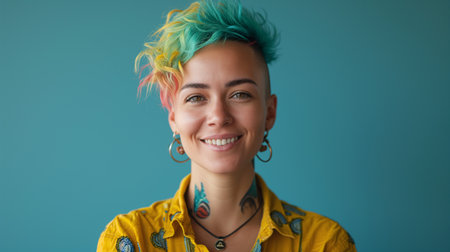 An AI illustration of an eccentric female showcasing her vibrant and stylishly colored hair.