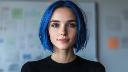Portrait of a young woman with blue hair