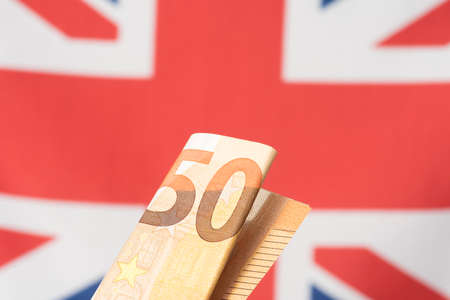national flag of the United Kingdom (UK) aka Union Jack made with British Pound coins