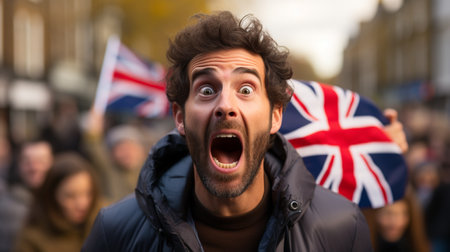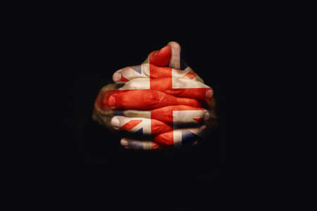Crossed hands with United Kingdom flag painted on fingers. Prayer for UK.