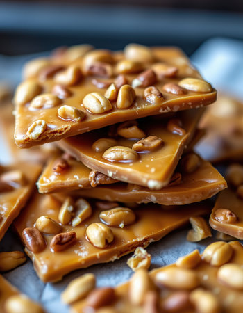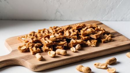 AI Generated. Peanut Brittle Pieces on Wooden Cutting Board