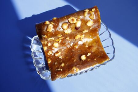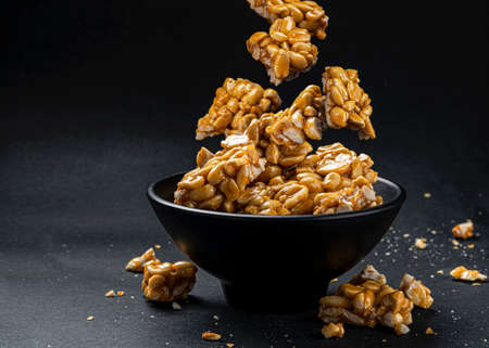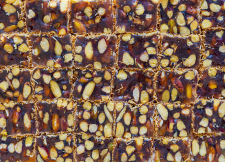homemade kozinaki with caramel from peanuts. traditional eastern sweetness