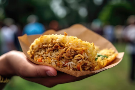 Nasi Goreng In Hand, Closeup, In Front Of The Park