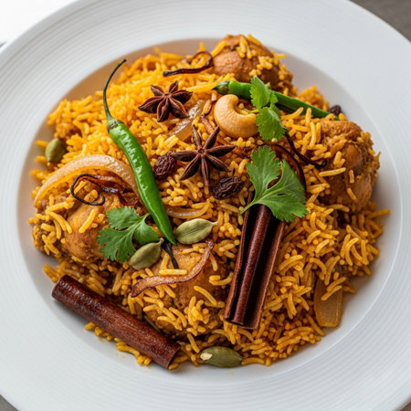 Exquisite Chicken Biryani: A Flavorful Culinary Presentation on Elegant Plate