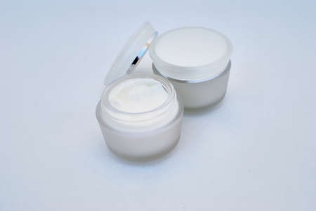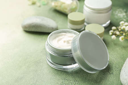 Containers of cosmetic face cream close-up