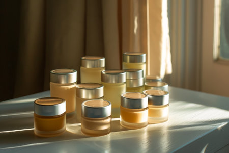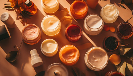 Collection of cosmetic natural creams stored. Generative AI