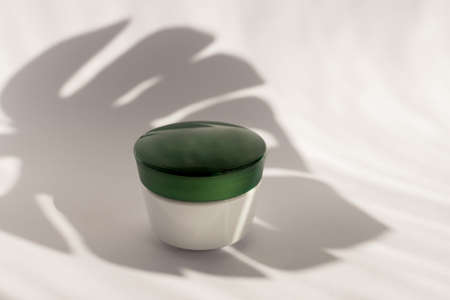 Cosmetic cream in a glass jar. Skin care concept. Background for beauty products