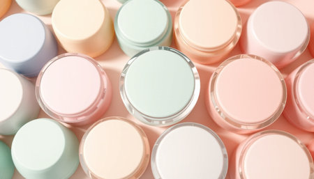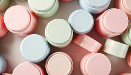 3d rendering of a lot of cosmetic jars in pastel colors