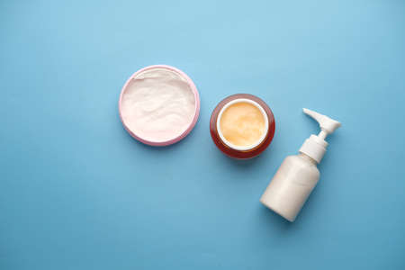 Moisturizing cream on a blue background. selective focus. Nature.