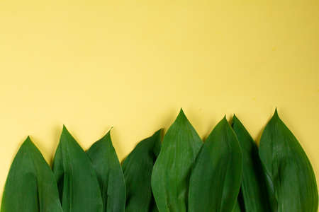 Ramsons leaves, wild garlic leaves in forest