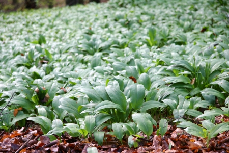 green wild garlic meadow in woods