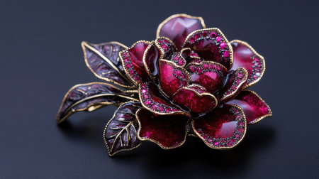 This stunning rose brooch features vibrant red and pink gemstones, showcasing intricate craftsmanship and elegant design, perfect for any fashionista.