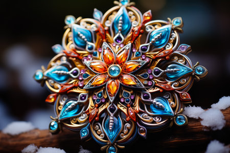Artistic blend of vibrant colors enhancing the intricate structure of a detailed snowflake