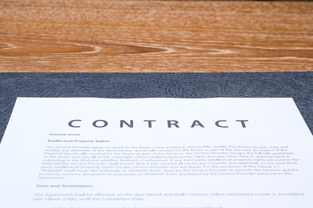 Pen and contract paper on the wooden table