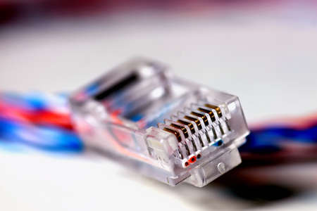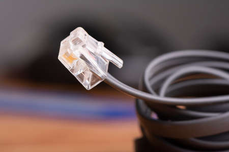 Close up shot of a telephone cable with socket, analog data transmit wire