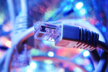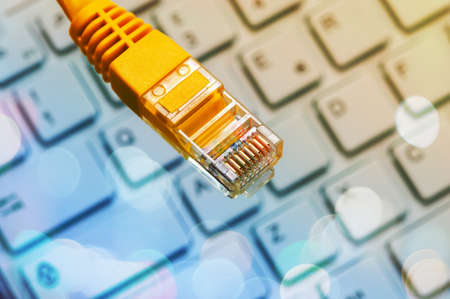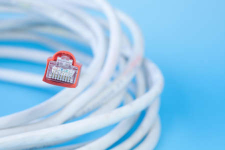 Network internet cable isolated on blurred background. Ethernet cable for computer. Technology concept
