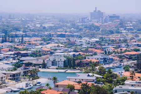 GOLD COAST, AUSTRALIA - December 30th, 2013: view of the residential areas along the river and water inlets in Surfers Paradise, Gold Coast in Queensland