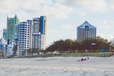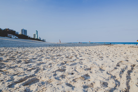GOLD COAST, AUSTRALIA - January 15th, 2015: The beach in Surfers Paradise, Queensland with golden sand and skyscrapers overlooking the Pacific Ocean